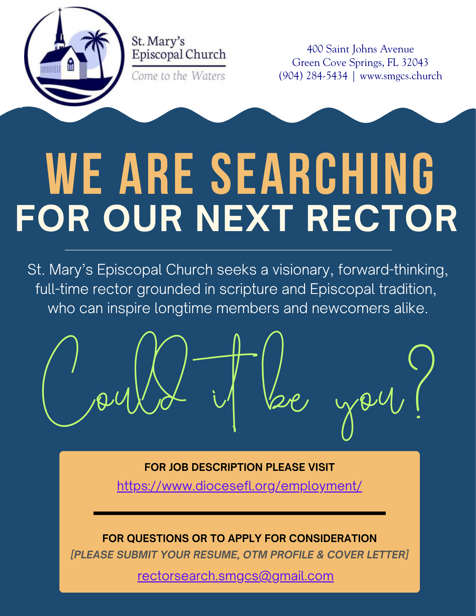 St. Mary's Cares about you. To connect with our rector or a clergy member, you can use the form to the right to request a meeting or call.